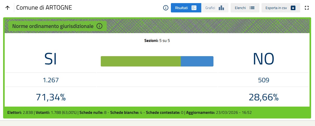 Per notizie sull'affluenza e risultati cliccare sul seguente link: https://elezioni.interno.gov.it/risultati/20260322/referendum/votanti/italia/01030150061